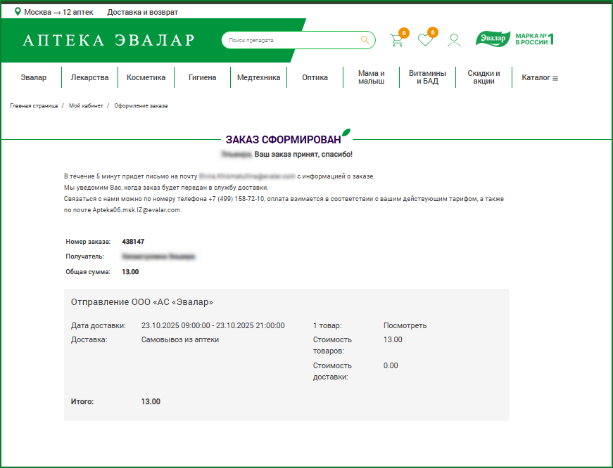 - Перед оформлением заказа убедитесь, что все товары доступны в выбранной аптеке
