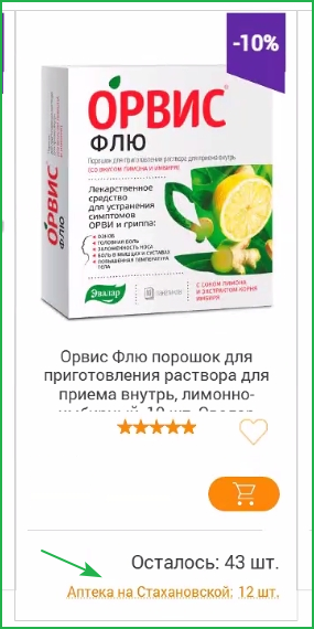 3. Вы можете видеть наличие товара в разных аптеках перед добавлением в корзину