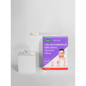 Инновационная формула гиалуроновой кислоты в капсулах представляет собой уникальное сочетание высокомолекулярных и низкомолекулярных фракций, которое обеспечивает глубокое увлажнение кожи, улучшение её тонуса и упругости, а также замедление процессов старения. Этот состав разработан специально для поддержания водного баланса в организме, что особенно важно для здоровья кожи, волос и суставов. Клинические исследования показали, что оптимальная доза гиалуроновой кислоты для поддержания молодости кожи составляет от 80 до 150 мг в сутки, для улучшения гибкости и подвижности суставов — от 100 до 200 мг в сутки2. Гиалуроновая кислота 150 мг Эвалар содержит максимум3 гиалуроновой кислоты — 150 мг в 1 капсуле, что оптимально для ухода за кожей и поддержки суставов. Применение гиалуроновой кислоты внутрь в виде капсул является “золотым стандартом” комплексного подхода к решению проблем возрастных изменений кожи, волос, суставов и других систем организма.