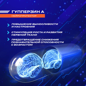 Гуперзин А – натуральное ноотропное вещество, которое способно укреплять когнитивную функцию и действовать как нейропротектор. Выступает как ингибитор ацетилхолинэстеразы, то есть препятствует ферментам расщеплять ацетилхолин в мозге, накапливая его. Ацетилхолин – это ведущий нейромедиатор, он напрямую связан с памятью, концентрацией внимания и способностью запоминать новую информацию. Играет весомую роль в сокращении мышц, поэтому способствует повышению работоспособности и скорости реакции. При нехватке ацетилхолина возникают трудности с кратковременной памятью и длительной сосредоточенностью.