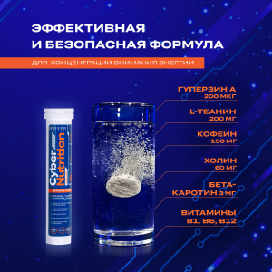 Продукт для повышения концентрации внимания, энергии и производительности в удобной форме шипучих таблеток.