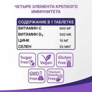 Преимущества Витамина С+D3+Цинк+Селен
