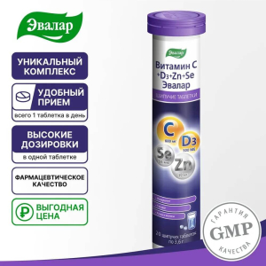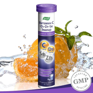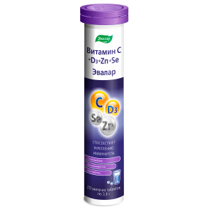 Витамин С+Д+Цинк+Селен Эвалар таблетки шипучие, 20 шт.