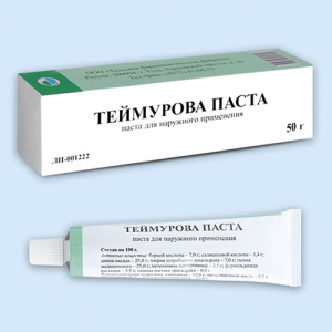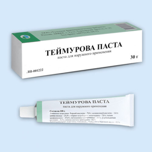 Фармдействие: Теймурова паста - комбинированный препарат, действие которого обусловлено входящими в его состав компонентами; оказывает антисептическое, подсушивающее и дезодорирующее действие.