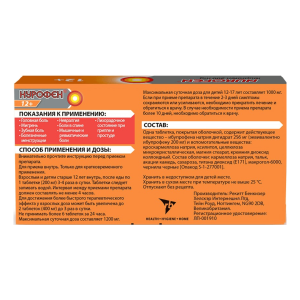 Нурофен® 12+ оказывает обезболивающее, жаропонижающее и противовоспалительное действие. Нурофен® 12+ применяют при головной и зубной боли, мигрени, болезненных менструациях, невралгии, болях в спине, мышечных и ревматических болях; а также при лихорадочном состоянии при гриппе и простудных заболеваниях. Максимальная концентрация ибупрофена достигается в два раза быстрее, чем для Нурофен® в лекарственной форме таблетки, покрытые оболочкой 200 мг.