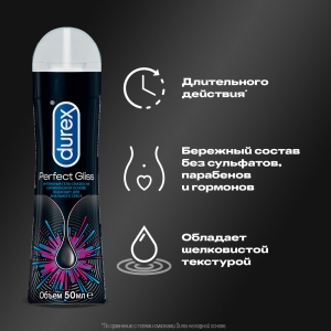 Durex® Perfect Gliss – гель-смазка на силиконовой основе для длительного увлажнения, уменьшения сухости и дискомфорта во время полового акта.
