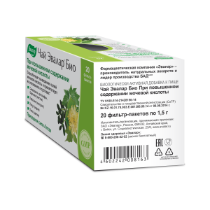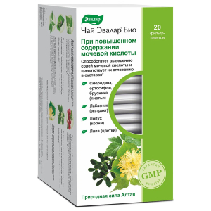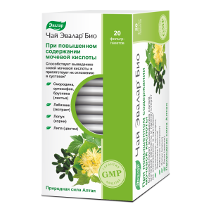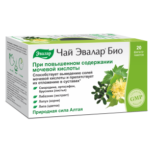 Чай Эвалар БИО при повышенном содержании мочевой кислоты способствует выведению солей мочевой кислоты и препятствует их отложению в суставах.