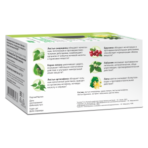 листья смородины, ортосифона, брусники, экстракт лабазника, корни лопуха, цветки липы.