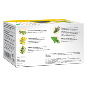 трава зеленого овса, трава зверобоя, листья розмарина, трава пустырника, листья мяты перечной.