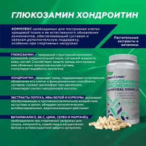 Глюкозамин Хондроитин с фито-комплексом SportExpert® – комплексный продукт, содержащий 2 самых известных хондропротектора: глюкозамин и хондроитин и усиленный противовоспалительными травами, витаминами и минералами.